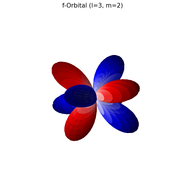 print("正在绘制 f 轨道 (l=3, m=2)... 这是一个典型的'八叶花'形状")